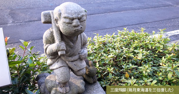 道の両脇に小さな石造がいくつもあり、江戸時代の伝馬や渡来人などでした。石像の脇に解説が添えられているので、そぞろ歩きするにはいいところです。
